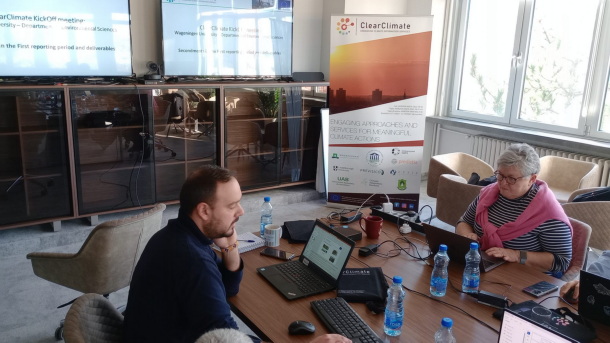 Prva aktivnost u sprovođenju projekta bio je sastanak organizovan tokom decembra u Novom Sadu gde su se okupili predstavnici svih partnera na projektu iz Holandije, Španije, Poljske, Italije, Ujedinjenog Kraljevstva i Gane. Pored pitanja vezanih za organizaciju ovog logistički zahtevnog projekta, glavne teme sastanka obuhvatile su određivanje efikasnih načina za povezivanje izučavanja klimatskih promena i klimatskih ekstrema, vizualizacije podataka, nauke o odlučivanju, komunikacije, pristupačnosti, modela vizuelne pažnje i neuromarketinga, kao i veštačke inteligencije, što su najrelevantnije discipline za razvoj klimatskih servisa.