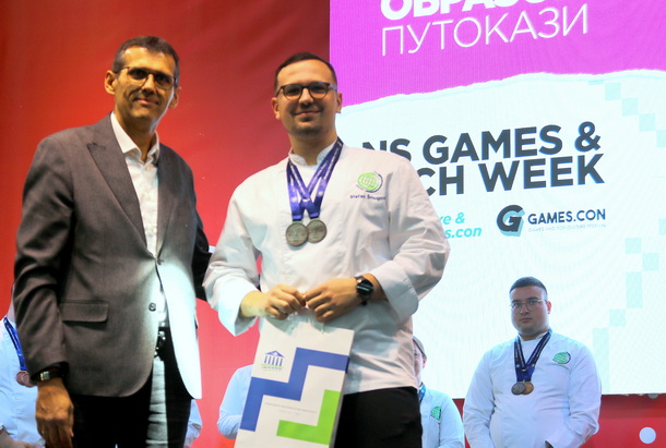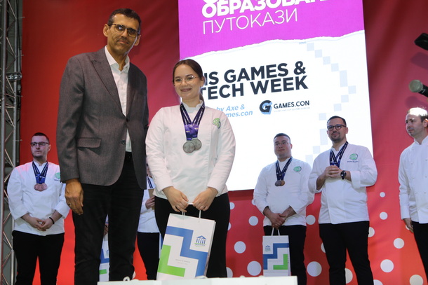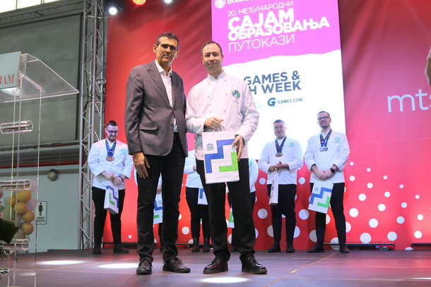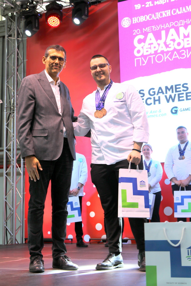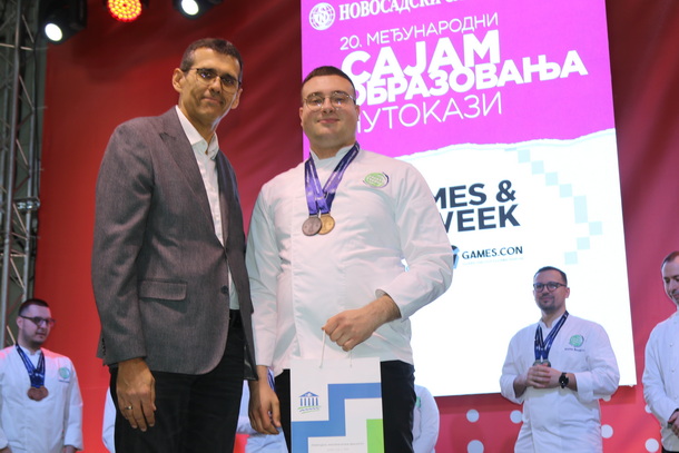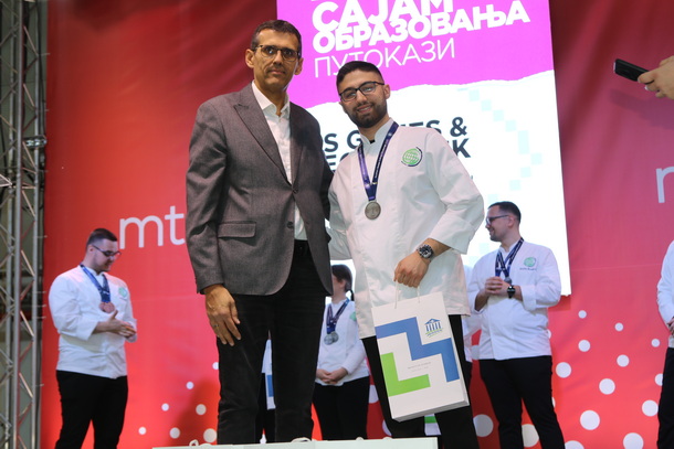 Čestitka na postignutom uspehu kulinarstom timu, stigla je i od prof. dr Srđana Rončevića, dekana PMF-a, koji je na otvaranju Sajma obrazovanja 2026, manifestaciji posvećene obrazovanju, pisanoj reči, kulturi i umetnosti (od 19 - 21. marta), uručio nagrade i priznanja za izuzetan doprinos u promociji PMF-a Departmana za geografiju, turizam i hotelijerstvo.