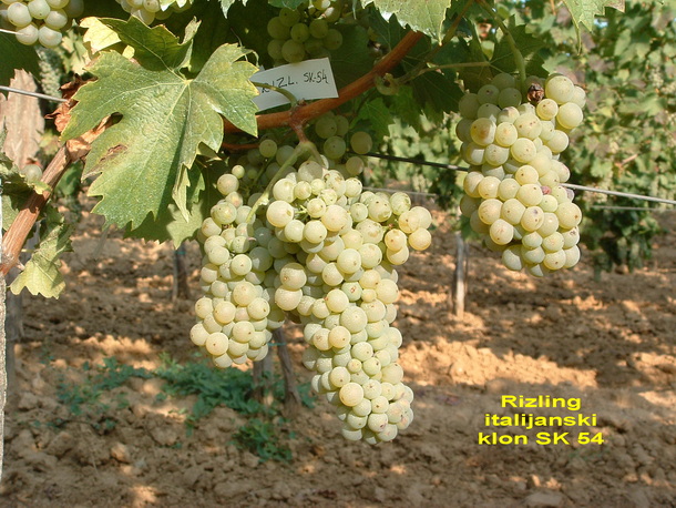 Rizling Italijanski klon SK-54 je umerene, ali solidne rodnosti a u odnosu na populaciju sorte redovno ima viši sadržaj šećera i daje kvalitetnija vina, sa finim kiselinama voćnog karaktera.