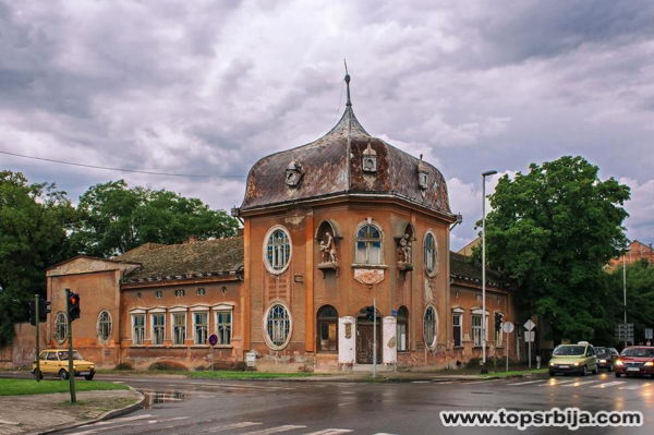 Pretpostavlja se da je projekat za izgradnju zdanja izradio Osječanin Viktor Askman, projektant zgrade stare rumske gimnazije. Zgrada je projektovana u stilu secesije i pripada periodu Jugendstila, modernog u to vreme u prestonicama Austrougarske monarhije. Originalnost ovoj zgradi daju pre svega plastičnost fasade s herbalnim motivima, ovalni vitražni prozori, skulpture „Dede i unuka“ i specifičan krov centralnog dela zgrade. Izgradnja zgrade je trajala sve do 1912. godine, a izvođač radova bio je izvesni Zvonimir Erbežnik. U vreme Prvog svetskog rata zgrada je služila kao vojna bolnica, i vrlo je verovatno da je pod svoj krov primila cuksfirera 25. Landšturm regimente Josipa Broza, čija se jedinica oporavljala u Rumi posle gubitaka na Ceru i Kolubari.