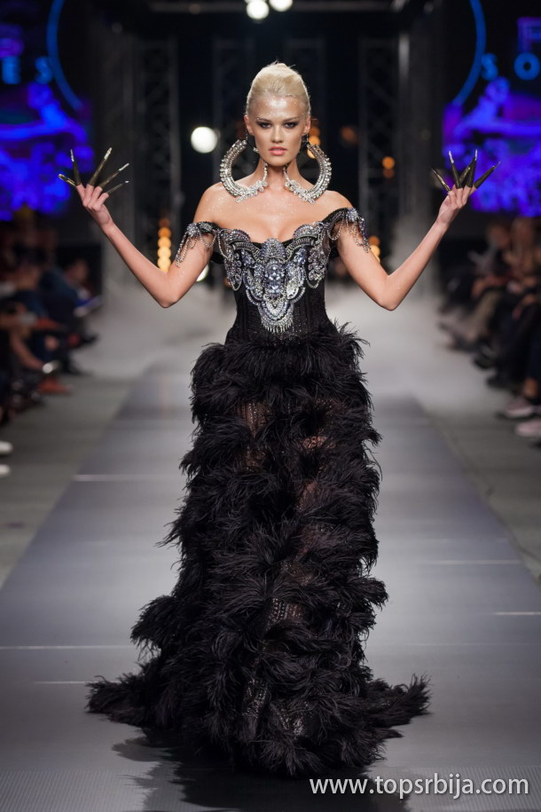 - Za mene glavna reč koja oslikava ovu kolekciju je - emocija. Predstavljen je sanjarski, melanholičan, crni ali nikad negativan svet. Moja kolekcija nalazi se između loše i dobre čarolije. Nekada se ne osećamo dobro i želimo da ostanemo u toj poziciji. Kada bi se svi oblačili jednostavno, onda bi smo svi izgledali isto i to ne bi ličilo ni na šta. Novi materijal ove sezone je perje, što je značajno jer sa perjem nisam radio godinama. Njega posle ne morate da skinete, samo će otpasti I tako će haljina dobiti drugačiji izgled, kao da ste kupili novu – kroz smeh dodaje Emerik Fransoa, član institucije Visoke mode u Parizu i potpredsednik Serbia Fashion Weeka.